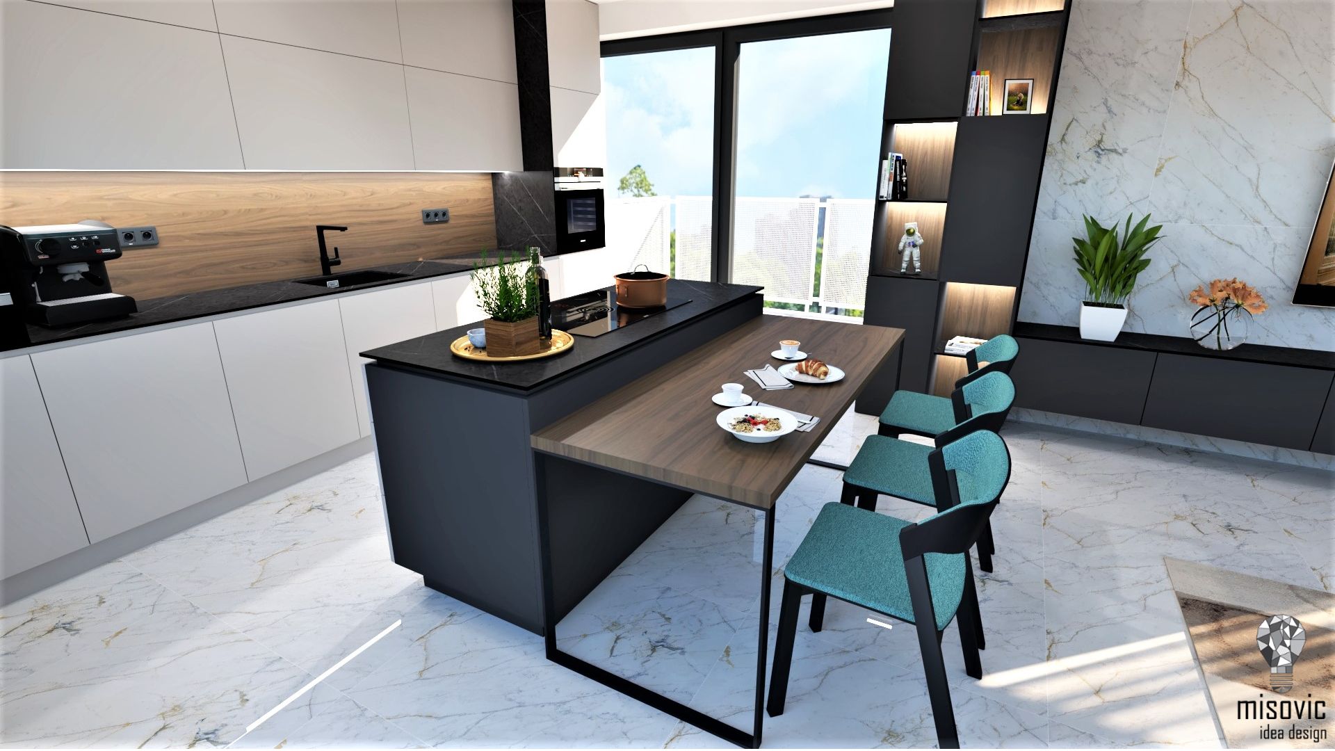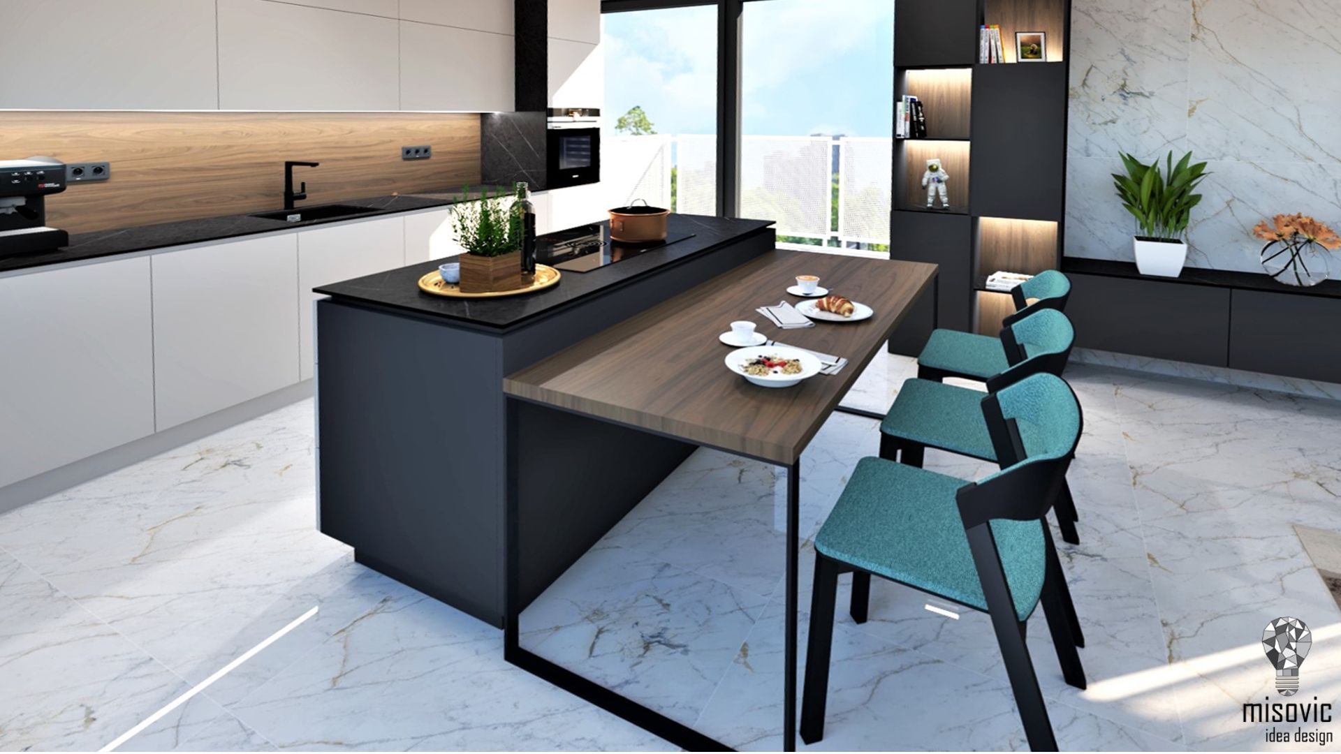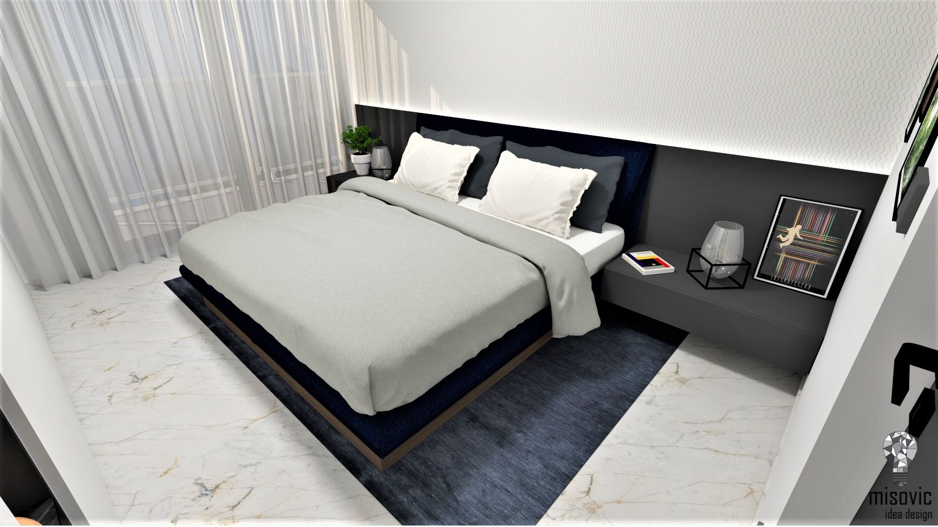 Elegantne riešený byt na bratislavskom Tehelnom poli. Celkový dojem z interiéru je tvorený tmavšími farbami a imitáciou mramoru.