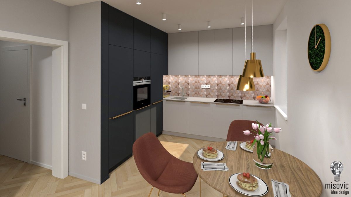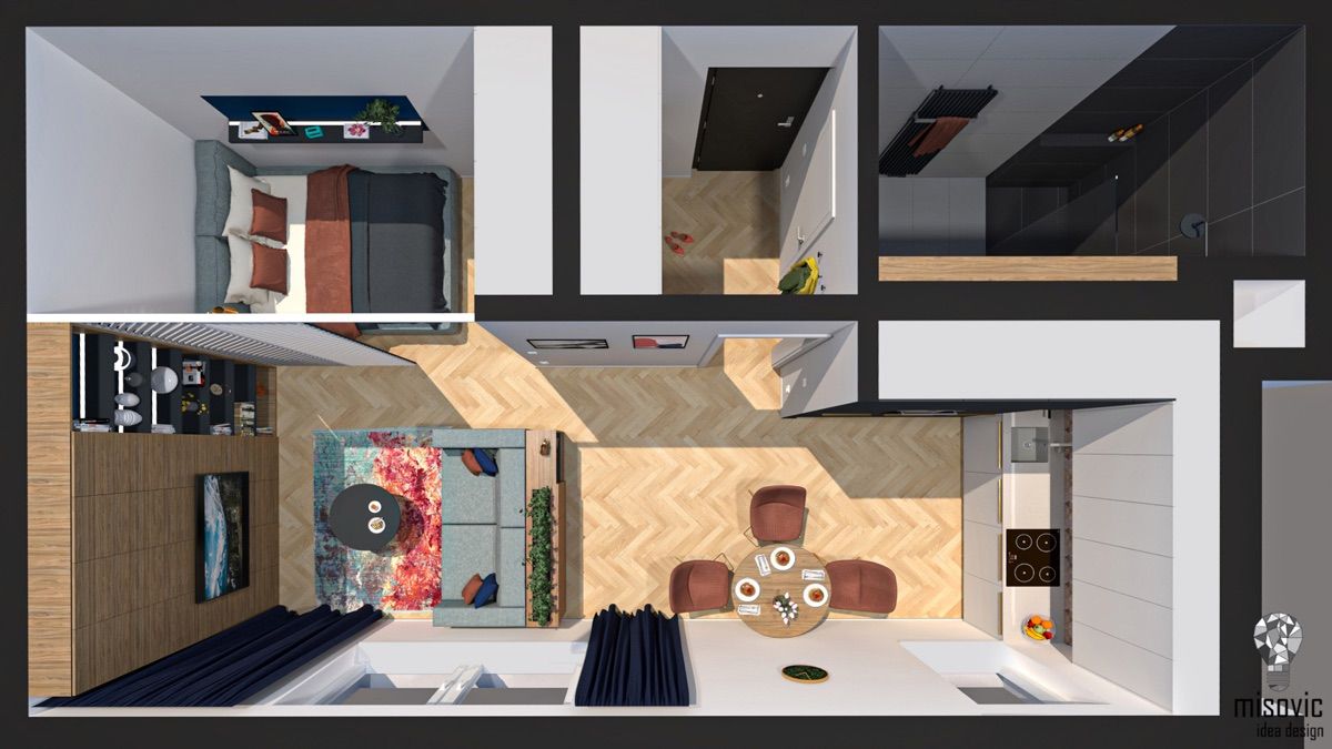 S citom zladené tmavšie farby, kovové prvky a orechová dyha dokážu dodať interiéru jedinečnú atmosféru. Byt je zároveň dôkazom toho, že sa dá aj v menších interiéroch vytvoriť dostatok úložného priestoru bez toho aby sa miestnosti „zapratali“ nábytkom.