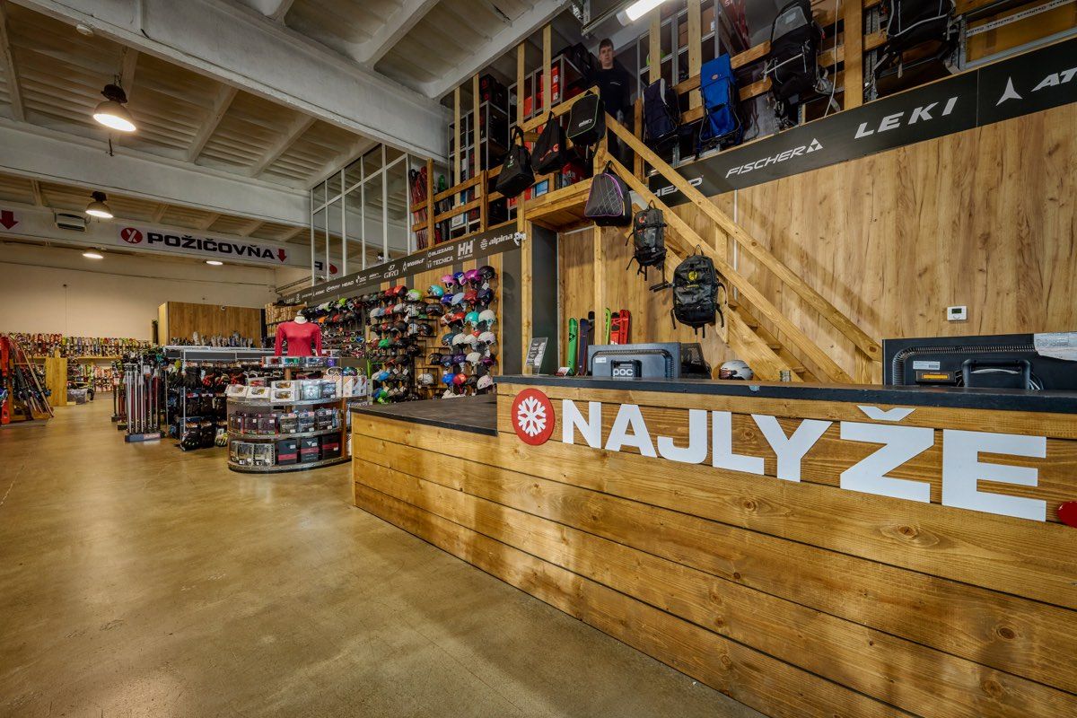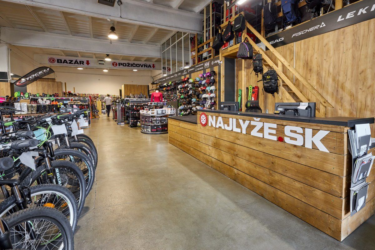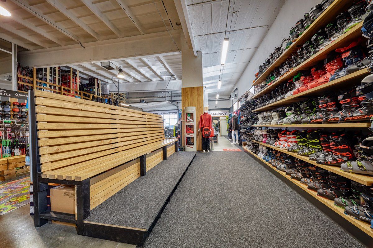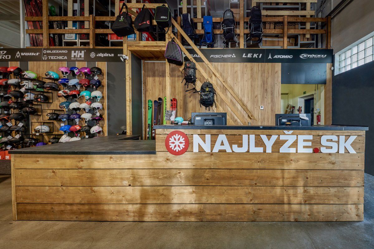 Zrealizovaná predajňa s lyžami, oblečením a športovým vybavením NAJLYŽE na Galvaniho ulici v Bratislave