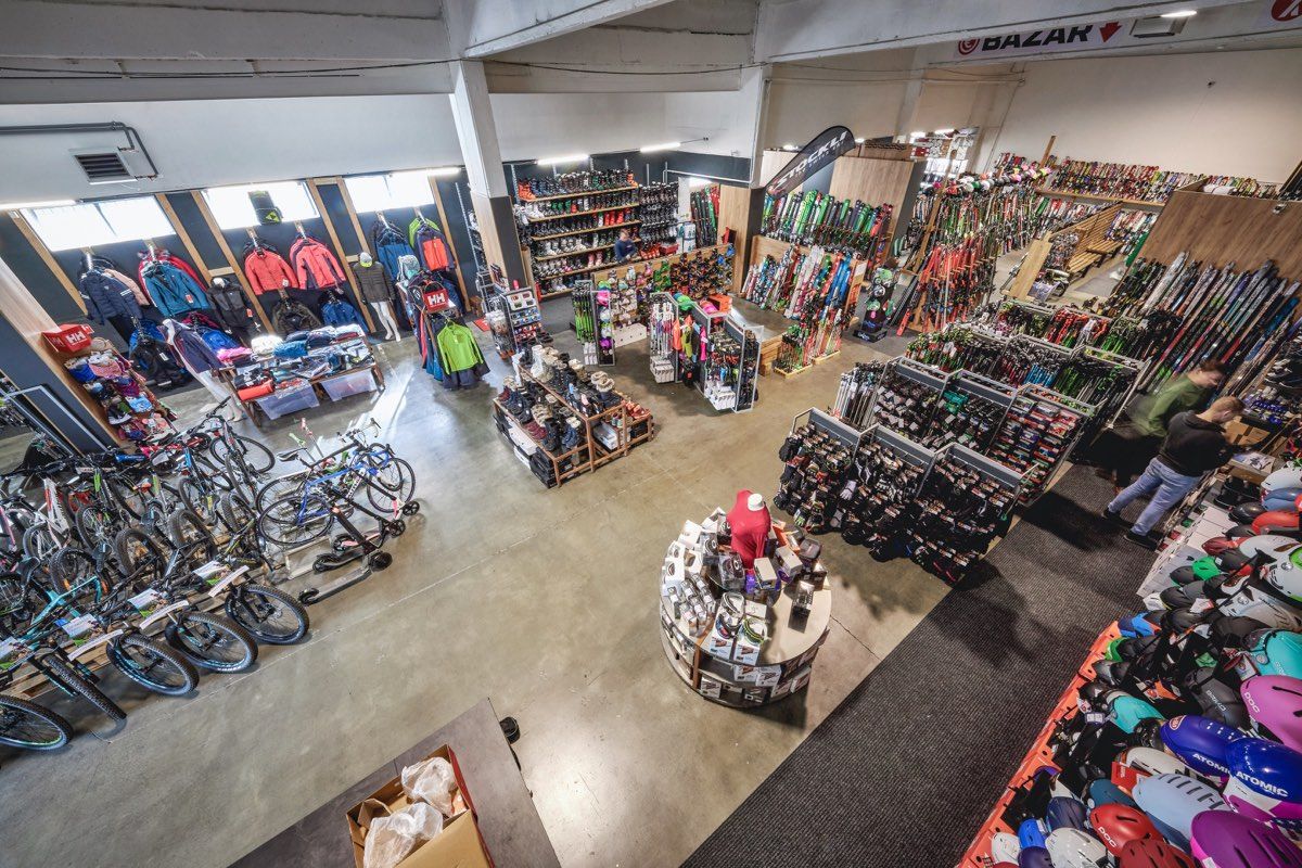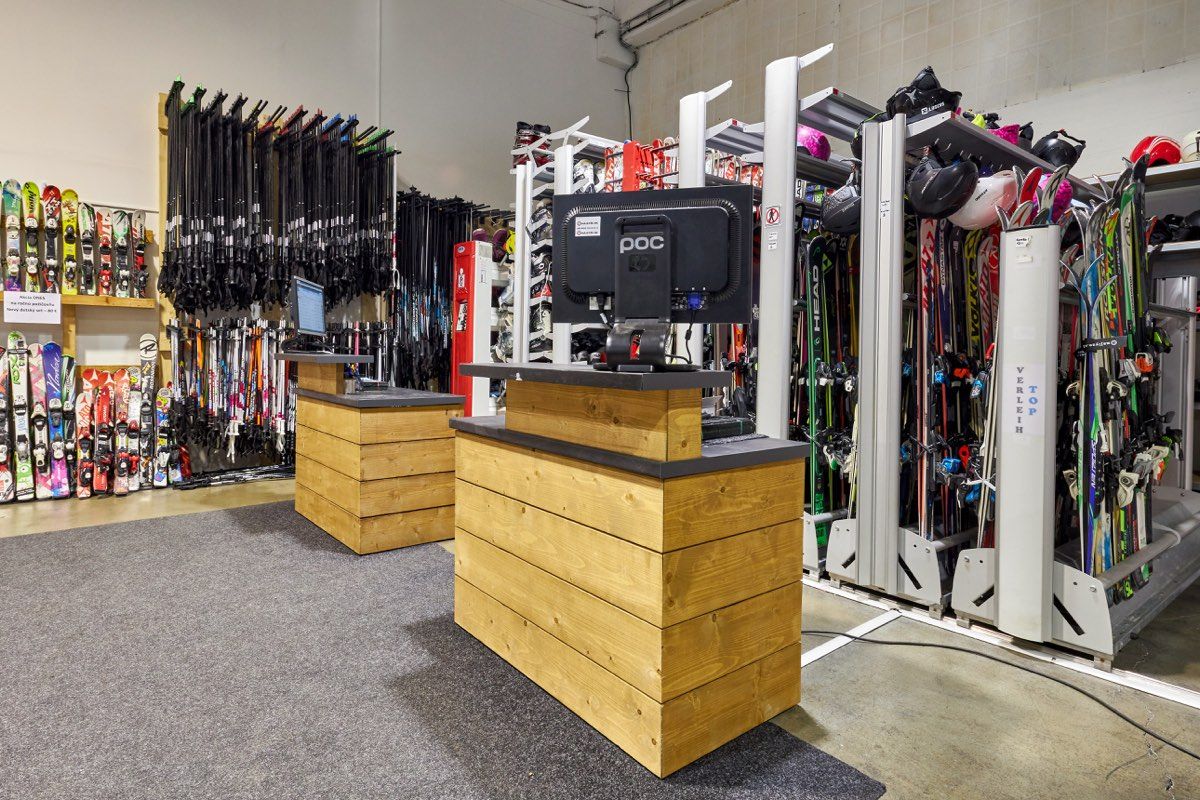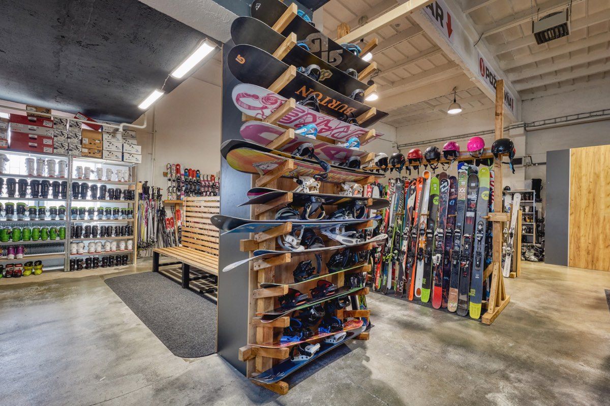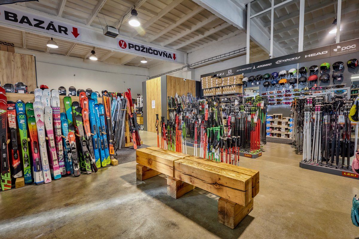 Zrealizovaná predajňa s lyžami, oblečením a športovým vybavením NAJLYŽE na Galvaniho ulici v Bratislave