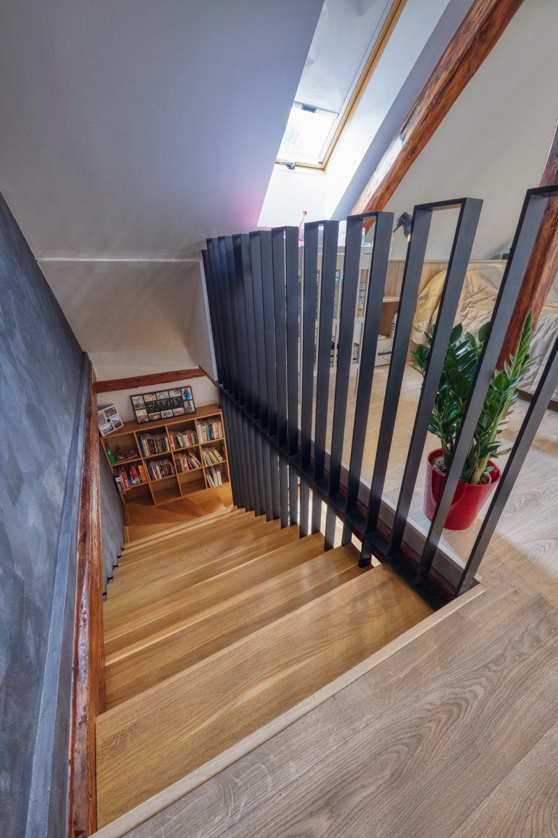 Kovová konštrukcia dominantného schodiska je prácou umeleckej kováčskej dielne Arttos.